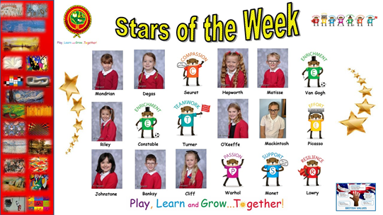 Congratulations to all of our Stars of the Week for proudly displaying our RESPECT values: Resilience, Effort, Support, Passion, Enrichment, Compassion and Teamwork.